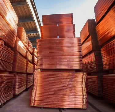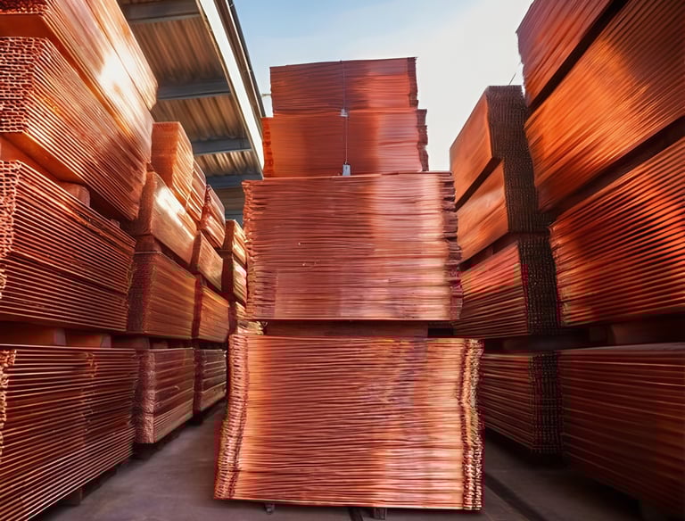 Los Cátodos de cobre son placas rectangulares de cobre refinado con una pureza mínima del 99,99% Cu (grado A), obtenidas mediante procesos de electrorefinación o electroobtención. Se trata de una de las formas más puras y comercialmente utilizadas del cobre, esencial para la fabricación de una amplia gama de productos industriales y eléctricos.